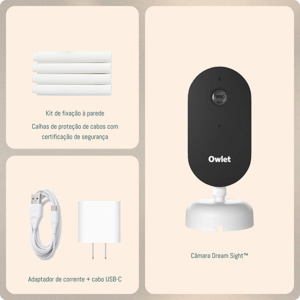 - O Dream Sight combina vídeo em alta resolução 2K HD com recursos inteligentes, como detecção de choro, comunicação bidirecional e monitoramento da temperatura e da umidade do ambiente. Ele também é compatível com a Dream Sock, certificada clinicamente, permitindo combinar vídeo e monitoramento de saúde para uma visão completa do bem-estar do bebê — tudo no aplicativo Owlet Dream.